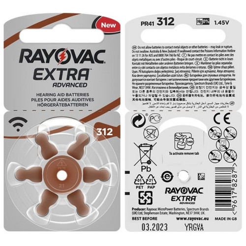 Батарейки для слухових апаратів, 6 шт, RAYOVAC EXTRA 312