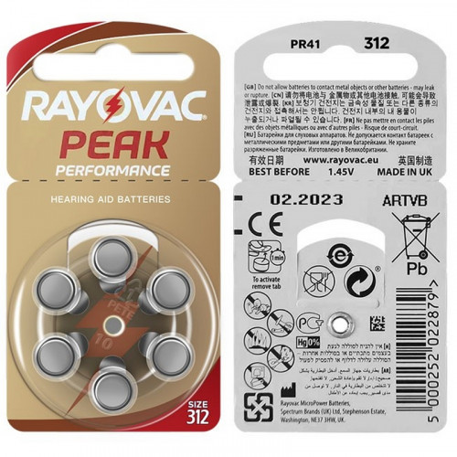 Батарейки для слухових апаратів, 6 шт, RAYOVAC PEAK 312